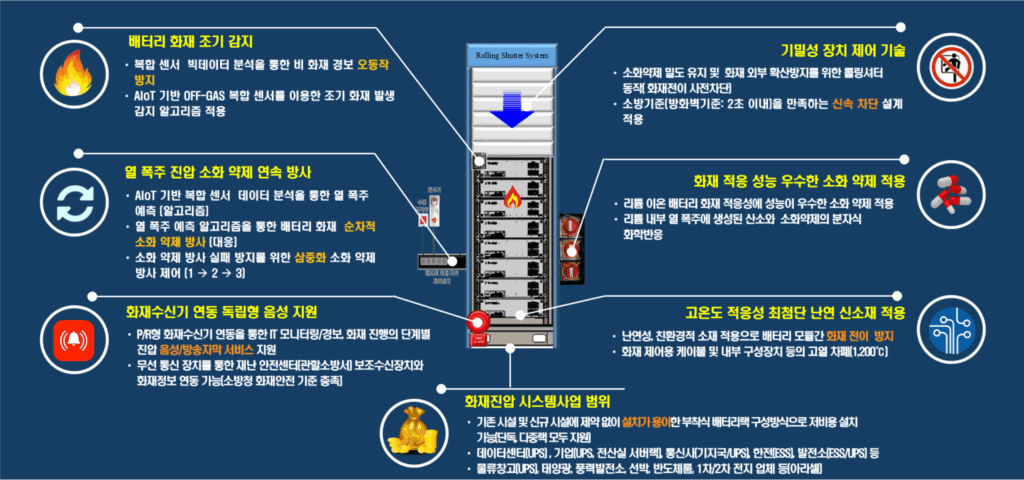 • 외부 화재 발생 시 배터리랙 내부 화재 전이 사전 차단